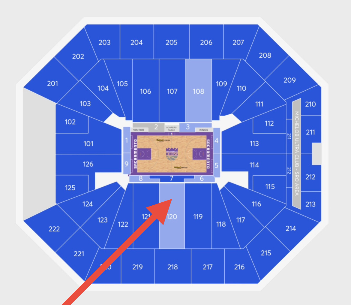 The Kings play at the Golden 1 Center in downtown Sacramento.2 I don’t want to continue to punch down on Sac-town but they must be on a budget because there were no T-shirts tossed. The T-shirt toss was instead replaced with a plastic mini basketball toss. I guess times are hard for the billionaire team owners.