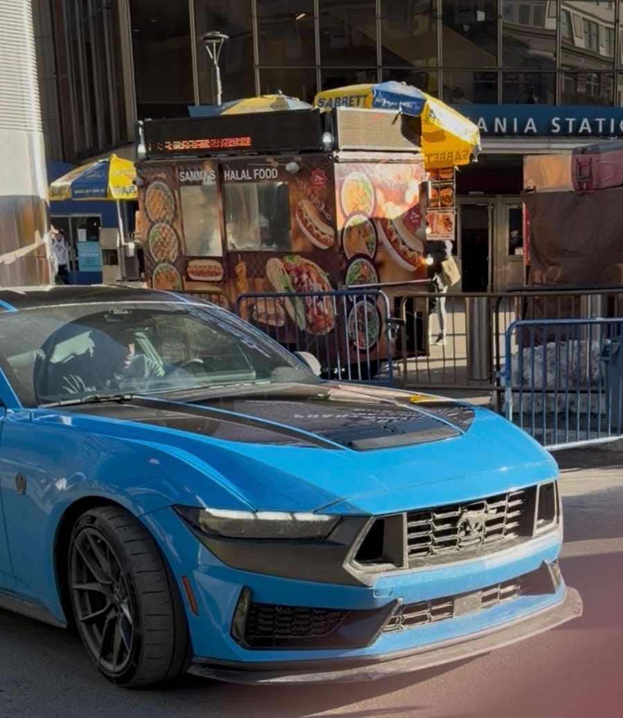 After the game, as my wife and I crossed the partially closed-off 33rd Street on Eighth Avenue, she told me to take out my phone. I turned around just in time to snap this photo of Mitchell Robinson leaving the game in his Ford Mustang.